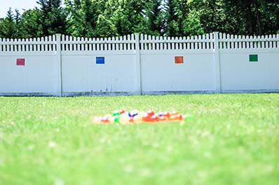 Use a light beach ball and set up goals to help your child practice kicking and aiming in the yard.
