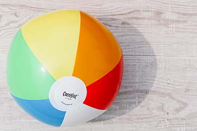 Use a light beach ball and set up goals to help your child practice kicking and aiming in the yard.